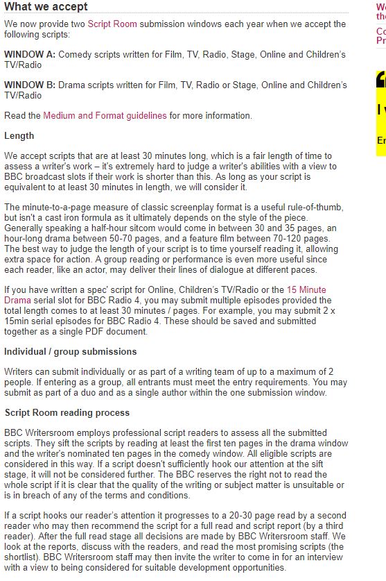 We want writers. Opportunities from bbc writersroom and across the bbc alfred bradley bursary award deadline. Script room is not a competition but a means by which the bbc seeks out the best writing talent. When script room is open for submissions the dates and details on how to submit a script will be made available on the bbc writersroom opportunities page.