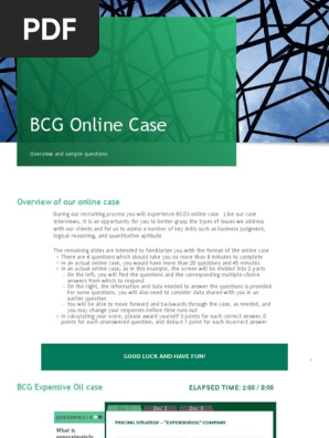 Bcg case interview pdf. Case interview partner matching service find candidates from around the world to practice interviews with for free as well as a library of cases to use in case interview practice. The interview cases you ll encounter are likely to go beyond the standard market entry questions and focus on topics such as emerging technologies which requires you to actively listen and adapt. To do that i would first look at how its sugar cereal performance at big m mart compares with that in other distribution channels. During our recruiting process you will experience bcg s online case.